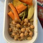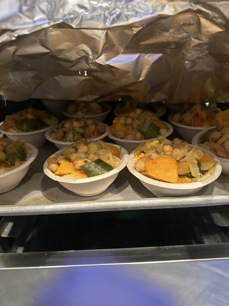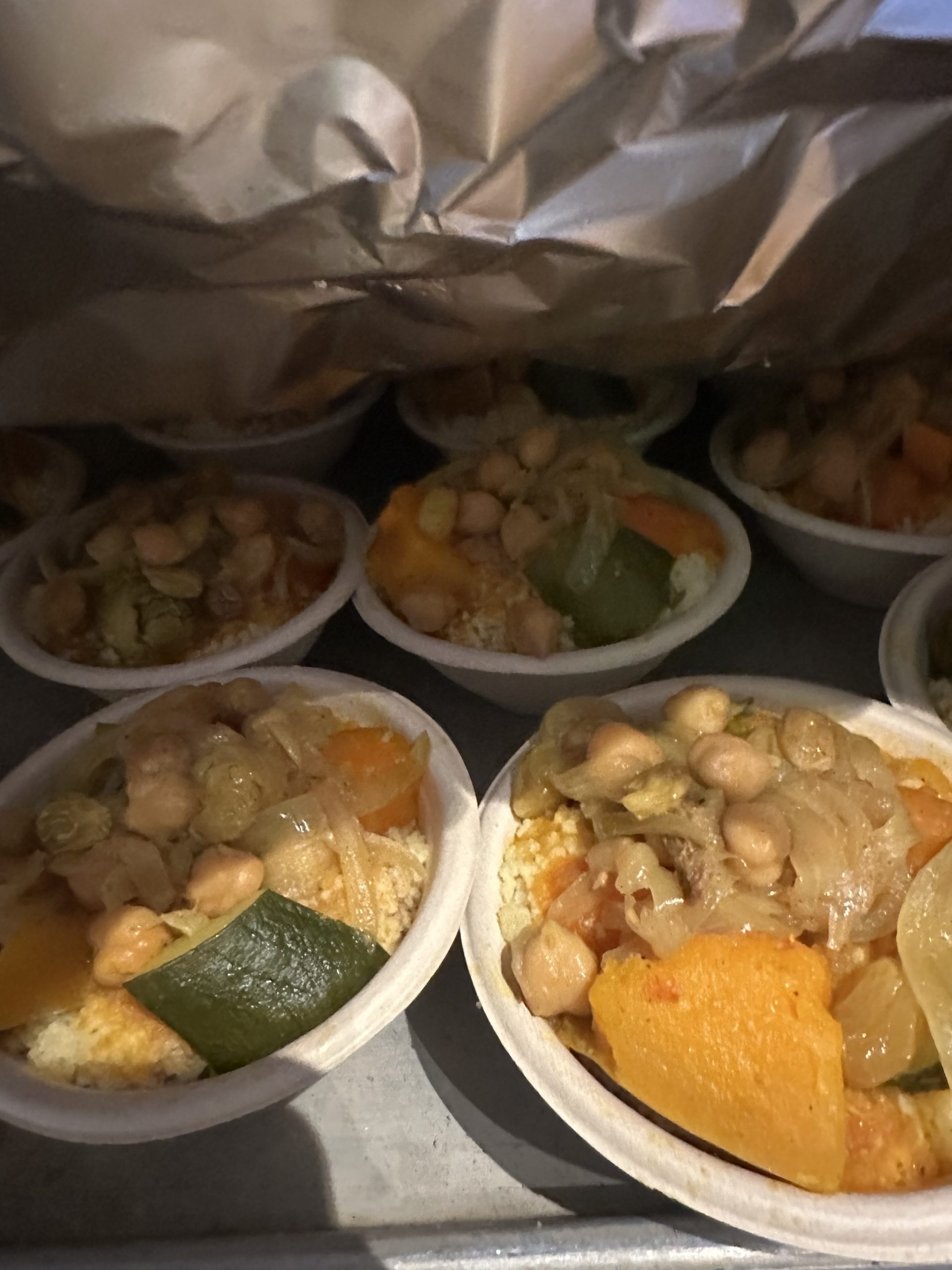 Moroccan couscous with an assortment of mixed veggies (carrots, zucchini, butternut squash, turnips, Brussel sprouts, and fava beans)