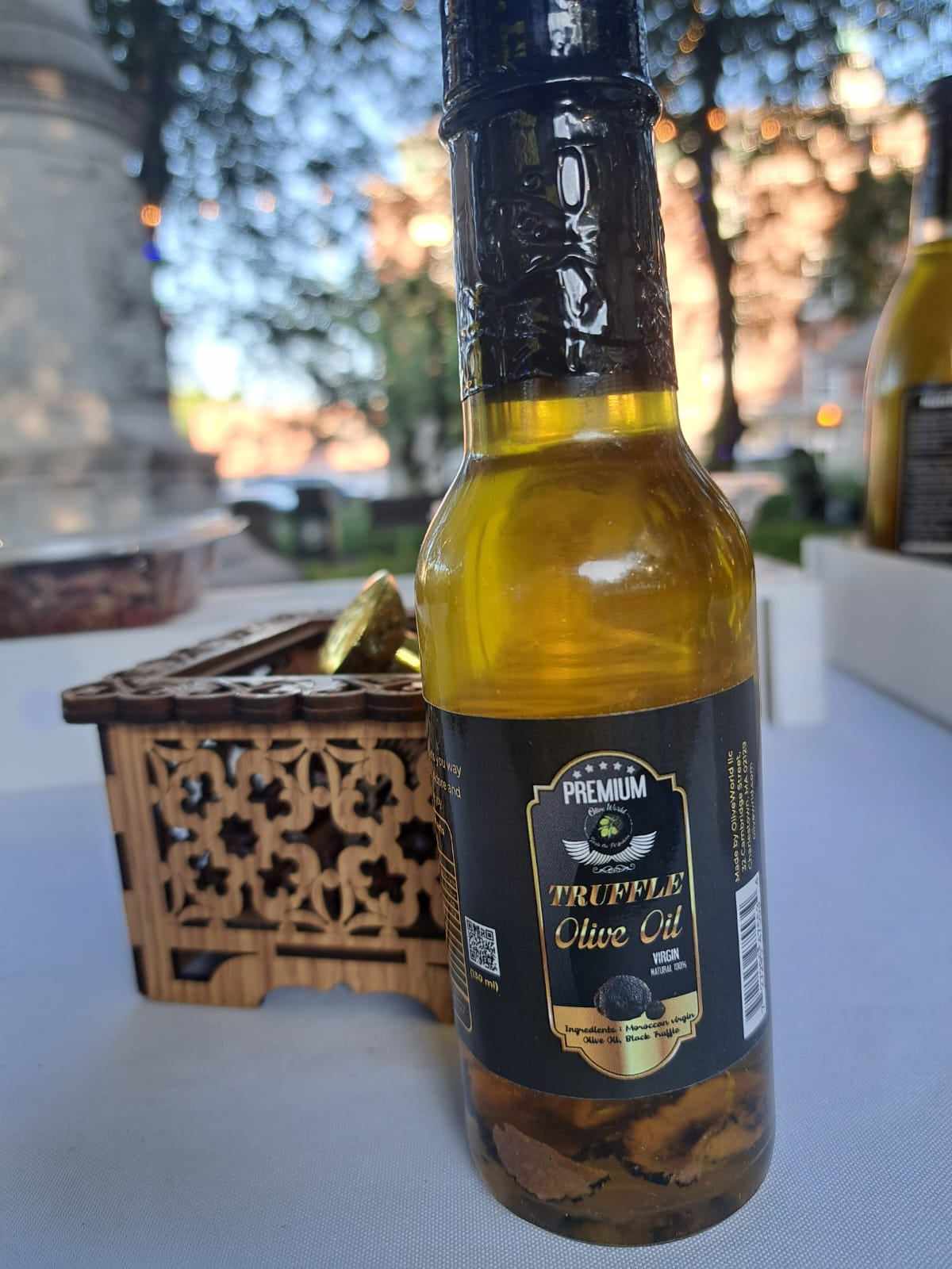 This elegant and refined Moroccan virgin olive oil with black truffle fragments will bring subtle flavour to dishes such as mashed potatoes, vinaigrette and pasta. It also looks wonderful in your kitchen or on your table!